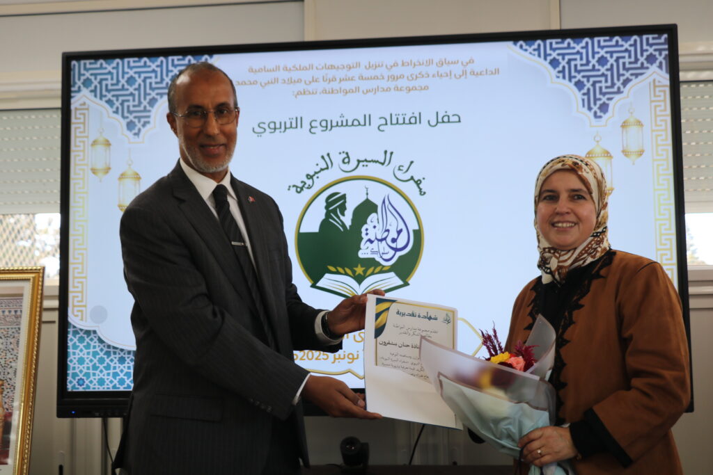 انسجامًا مع التوجيهات الملكية السامية الداعية إلى إحياء ذكرى مرور خمسة عشر قرنًا على ميلاد النبي محمد ﷺ، احتضنت قاعة فاطمة الفهرية يوم السبت 23 جمادى الأولى 1447هـ الموافق لـ15 نونبر 2025م، حفل افتتاح المشروع التربوي “سفراء السيرة النبوية” الذي تنظمه مجموعة مدارس المواطنة.