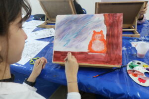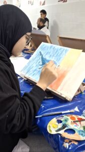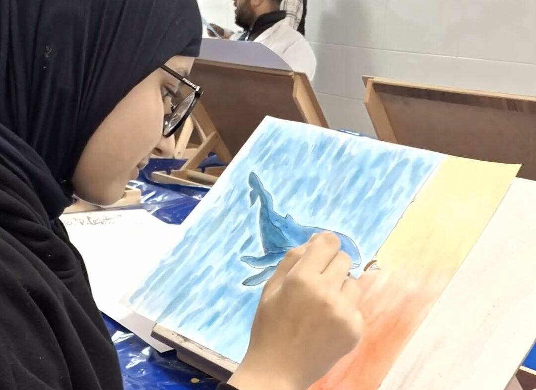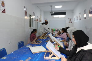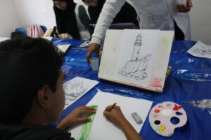 ورشة الرسم: خصّصت هذه الورشة لإطلاق العنان لخيال المتعلمين، من خلال رسم لوحات فردية تعبّر عن مواضيع مختلفة، باستعمال تقنيات متنوعة وألوان حرة.