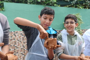 ورشة الطين: حيث تعرّف المتعلمون على خصائص مادة الطين، وخاضوا تجربة تشكيل فنية بأيديهم، عبّروا من خلالها عن خيالهم الشخصي في تصميم أشكال بسيطة ومعبّرة.